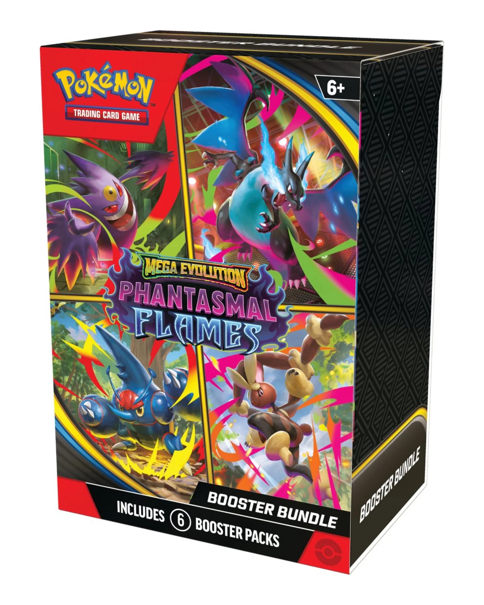 De Phantasmal Flames Booster Bundle bevat zes booster packs uit de nieuwste Pokémon TCG-set. Ontdek krachtige Mega Pokémon zoals Mega Charizard X ex en Mega Gengar ex en vergroot je kans op zeldzame illustration rares.