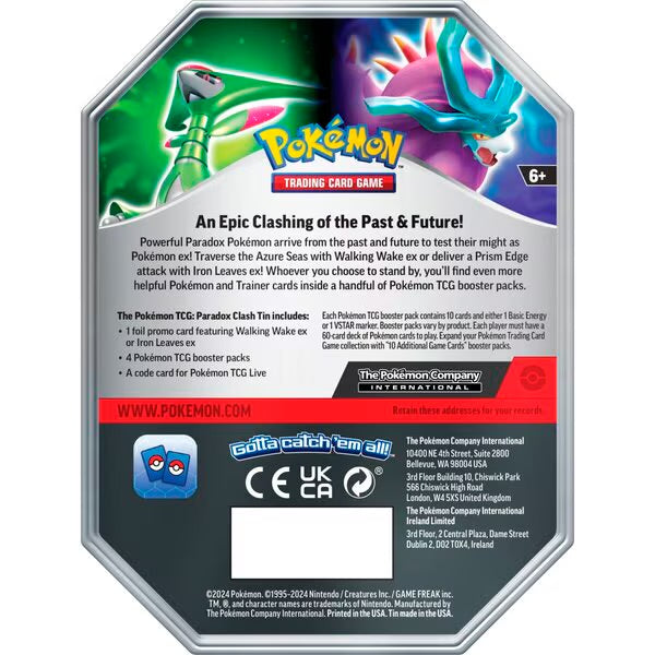In deze set van twee tins krijg je de keuze tussen de futuristische Iron Leaves ex of de eeuwenoude Walking Wake ex, zodat je beide krachtige in je collectie kunt hebben.